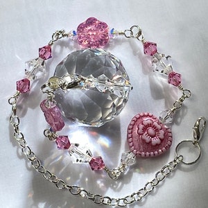 Crystal Sun Catcher: Rose Flower Prism, Swarovski Beads, Rainbow Maker
